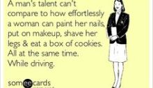 I read this joke somewhere: “Why women do not need a driver’s licence? Because there are no roads between the laundry room and the kitchen!” Now, how funny is that! To define our roles for us and then laugh at the role they gave us. They…the cavemen decided that cave-women are better off living indoors…
